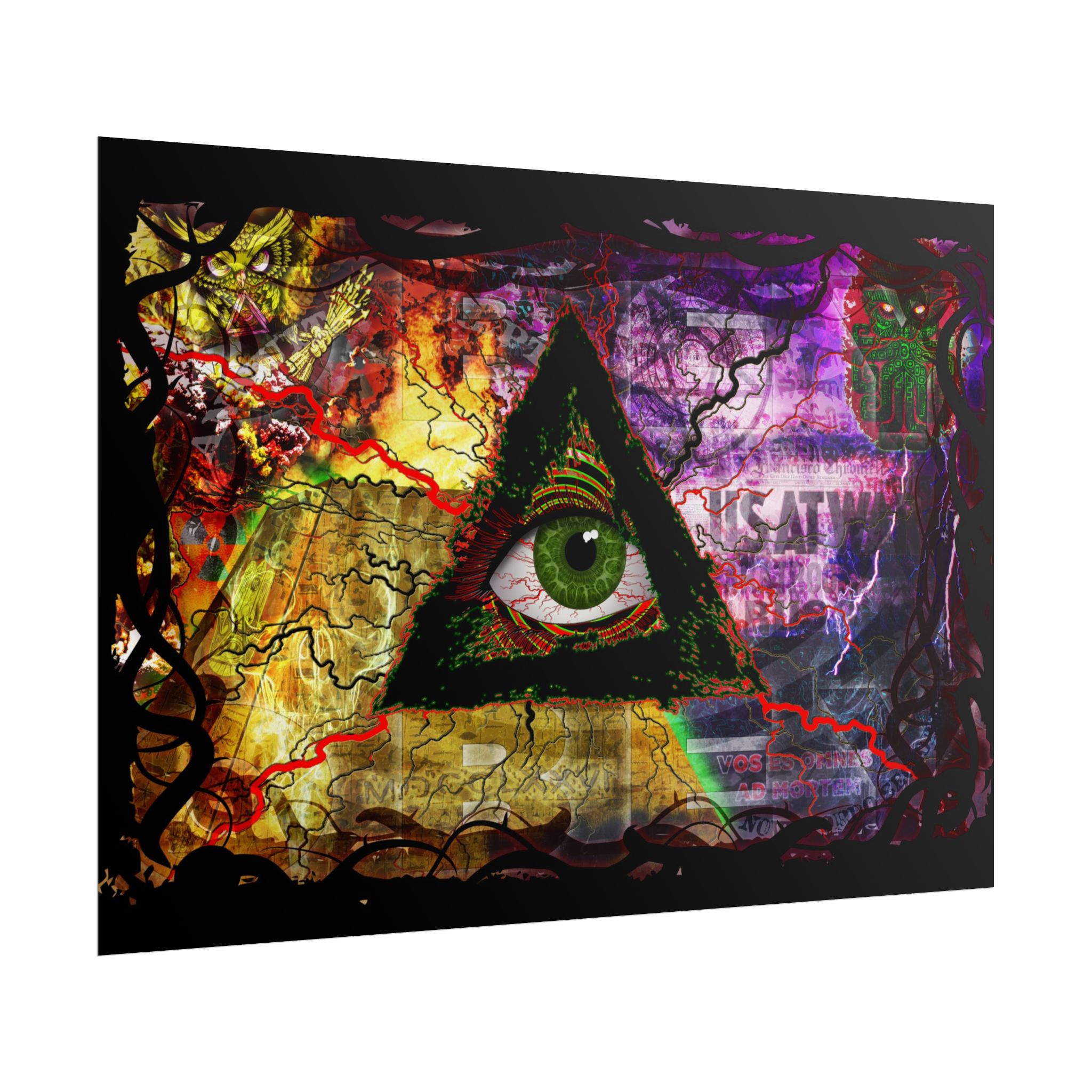The All Seeing eye graphic started out as a flyer that I was making for Lords of Chaos, and Bozly of Big Top Creations. After the flyer I could not get this image out of my head and I had to keep going. Made this art piece in 2016, all Human made. Several composite images and blending of graphics, some hand drawing via Wacom Tablet. Thank you for checking out my art, you are appreciated!